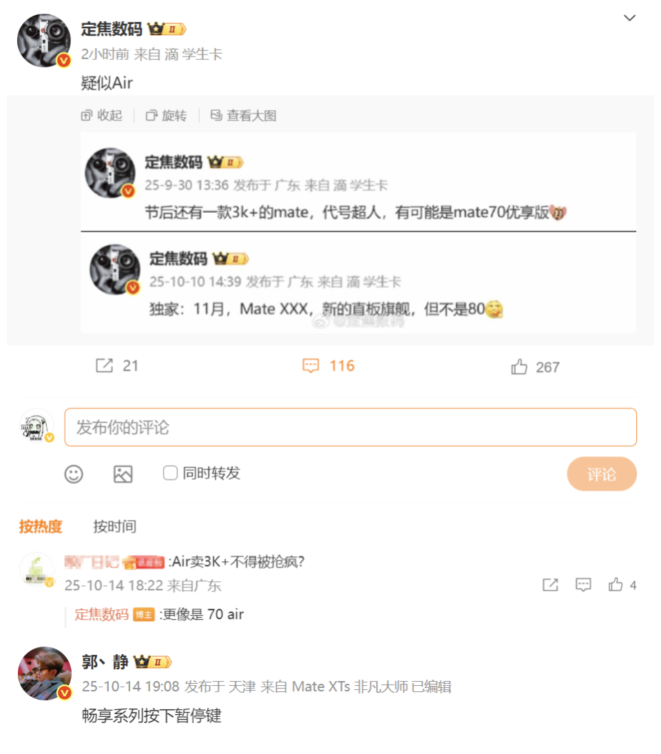 然后在畅享系列悄然退场的同时,华为正在酝酿一款令人振奋的新产品——Mate 70 Air,这款产品很可能成为华为突破当前困境的利器。