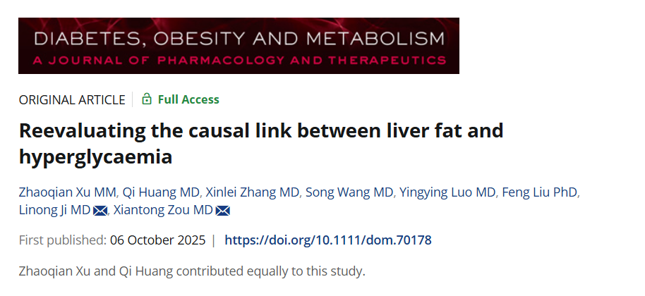 [1].Xu Z, Huang Q, Zhang X, et al. Reevaluating the causal link between liver fat and hyperglycaemia. Diabetes Obes Metab. 2025 Oct 6.